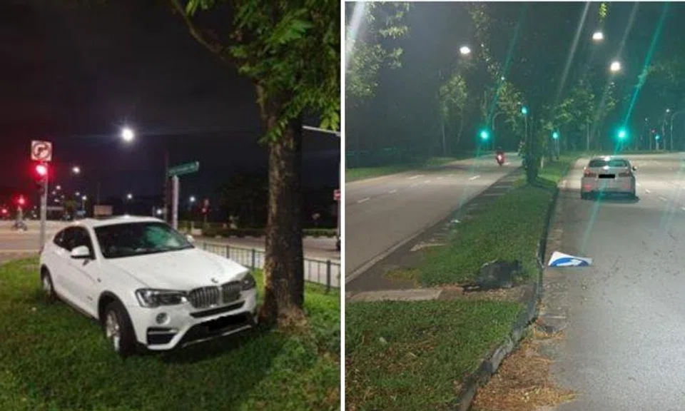 Driver crashes BMW into tree in Seletar and abandons car, police trace and arrest him