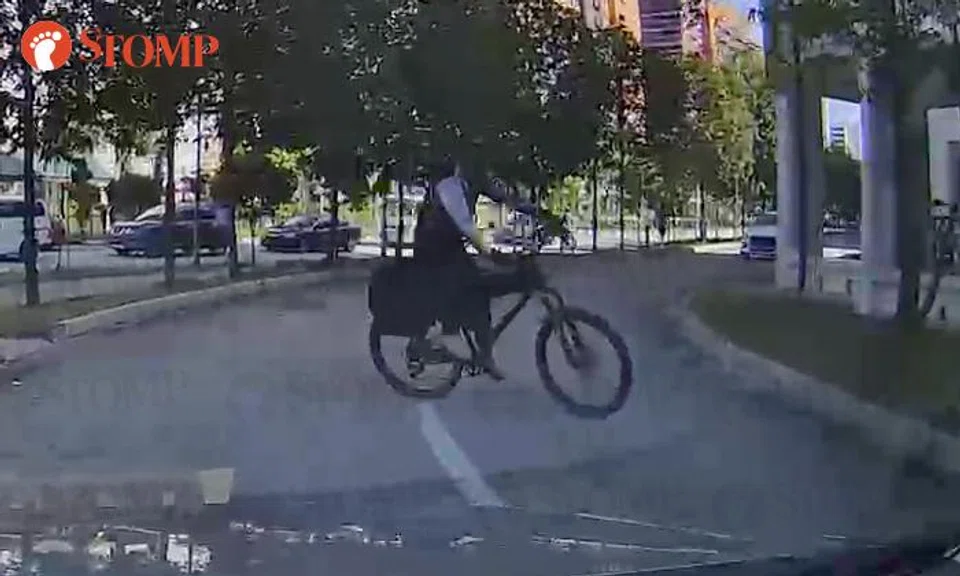 It was a close shave for a driver and a cyclist who nearly collided in Tampines Central 7, but the latter did not seem to care.