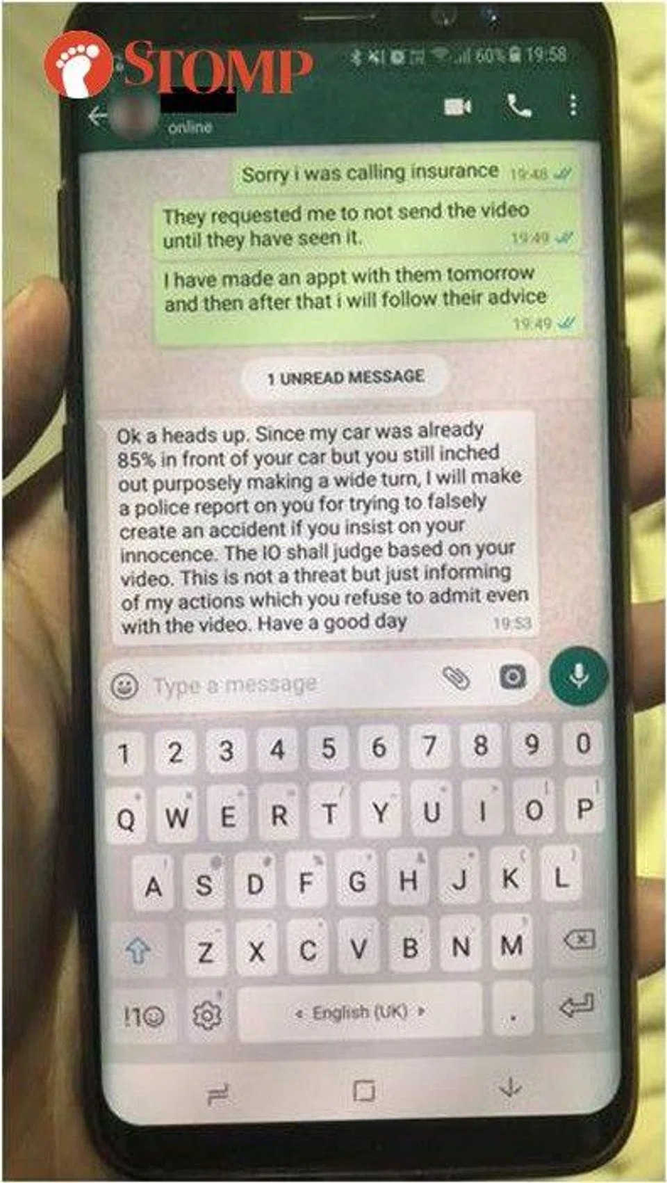 He shared a text message he received from the driver telling JN that he will make a police report because he tried to "falsely create an accident".
