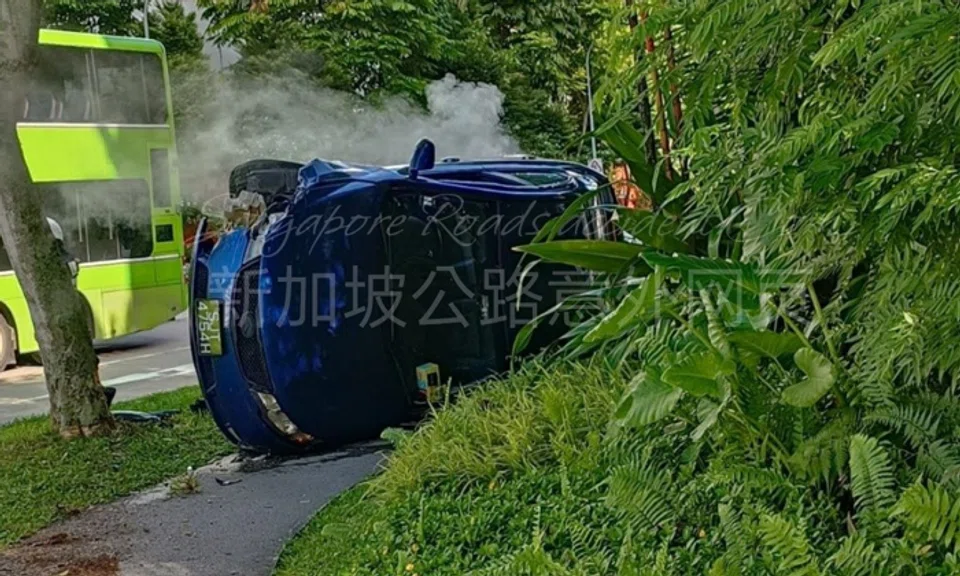 In an unrelated incident on Nov 19, a car had also flipped to its side in Bras Basah.