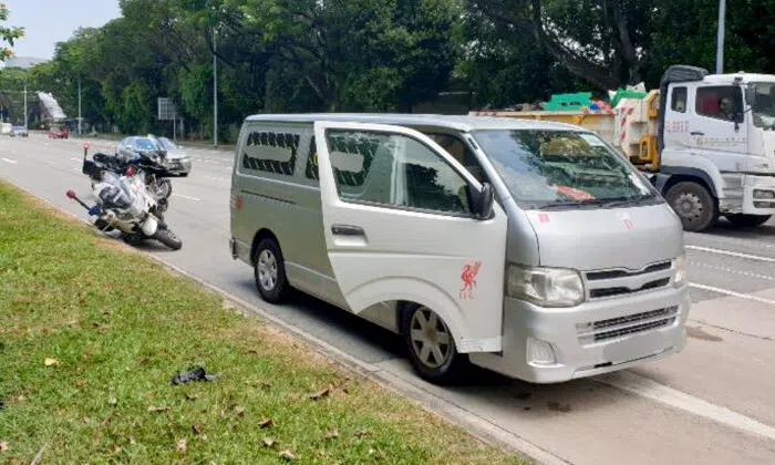 He sped off instead and drove dangerously before he stopped the van at the junction of Sims Way and Geylang Road. He then fled on foot.
