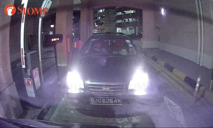 The driver of a Hyundai was caught on video tailgating a car out of a carpark at Jurong West Street 93 last Friday evening (June 21).