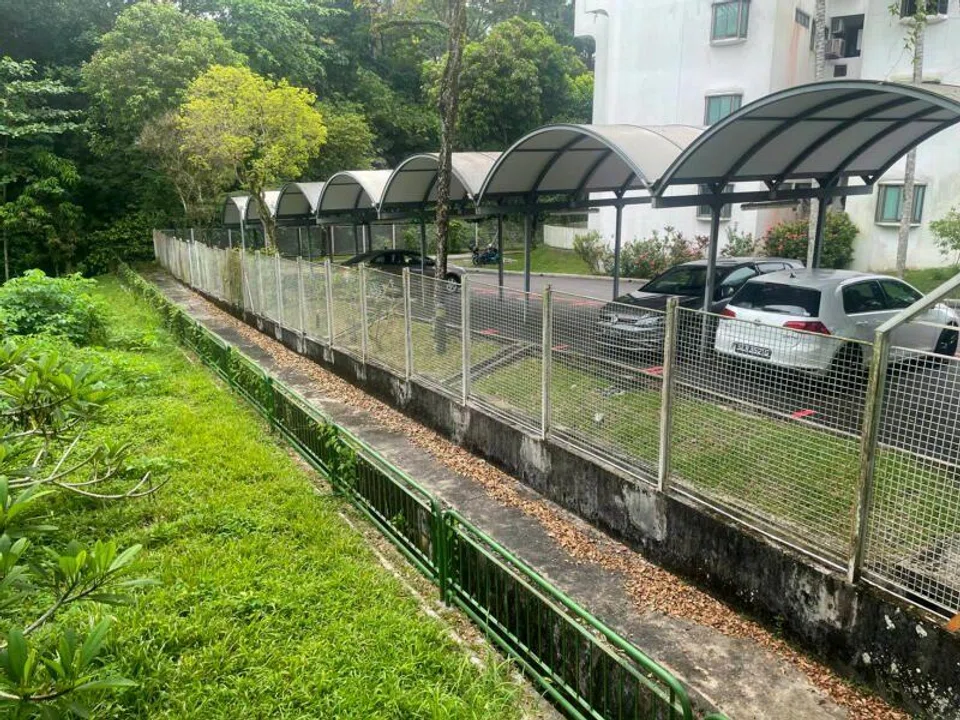 The fence, which sits on a raised concrete platform, surrounds the Buona Vista Gardens condominium.