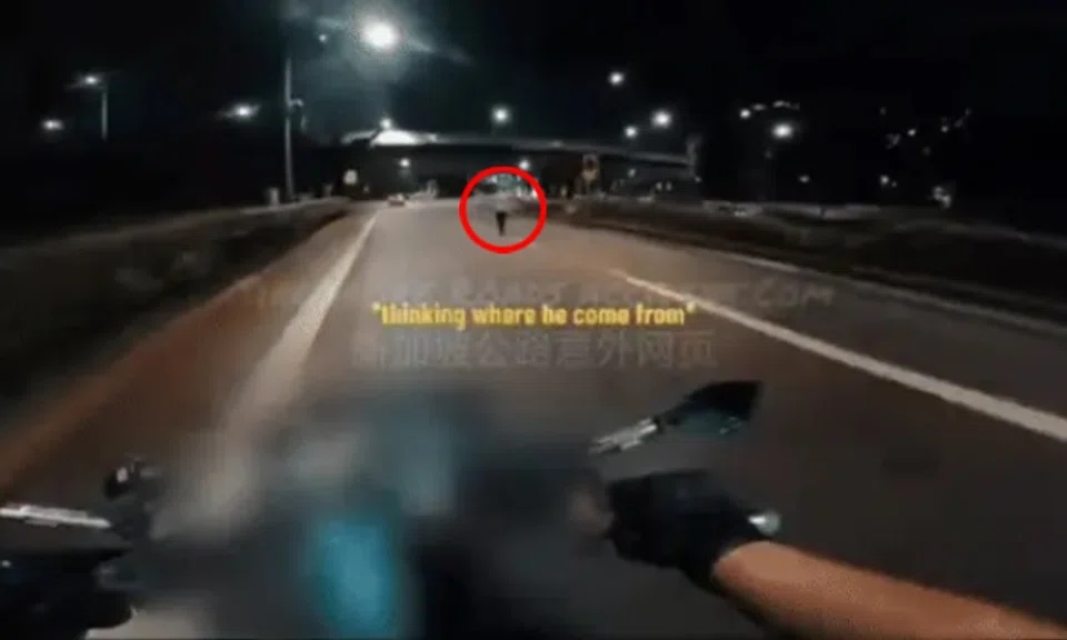 A video posted on the Singapore Roads Accident Facebook page captured the moment the motorcyclist, noticing the man dangerously wandering along the road, sprang into action.
