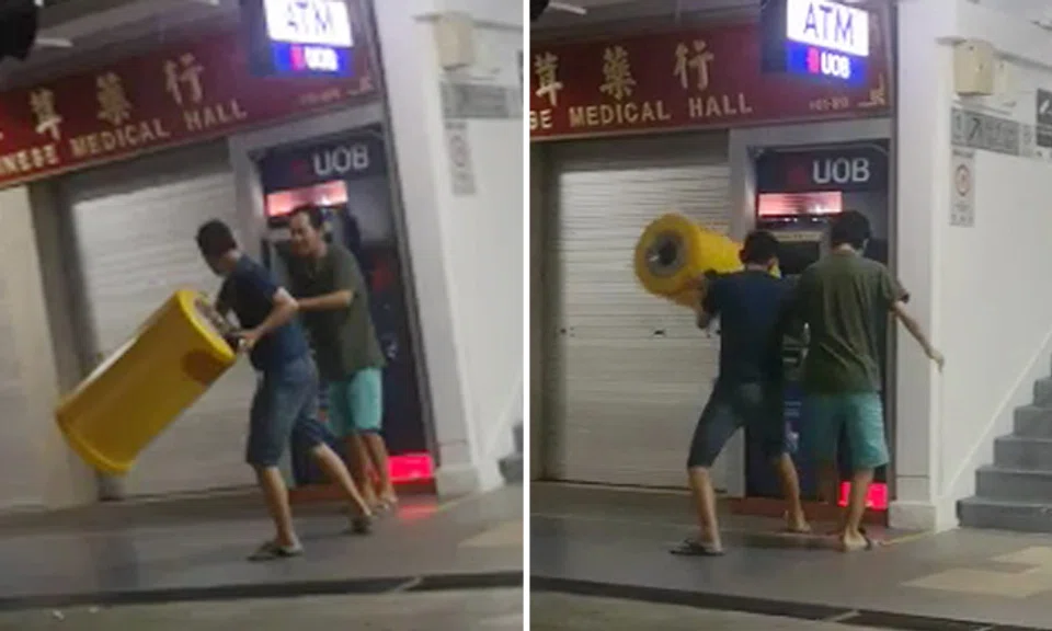Mr Cai, 43, said that the man had been drinking at the coffee shop prior to the incident. After paying for his drinks, the man walked to the ATM and staring hitting it.