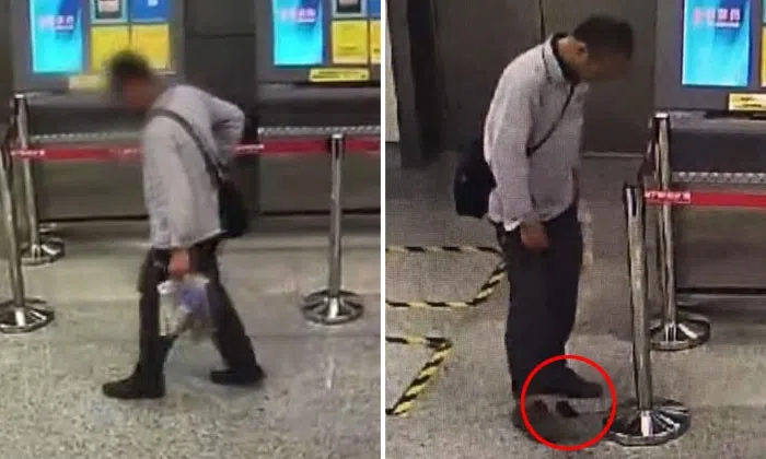 A man in China pooped in his pants before releasing his you-know-what through onto the floor of a subway station.