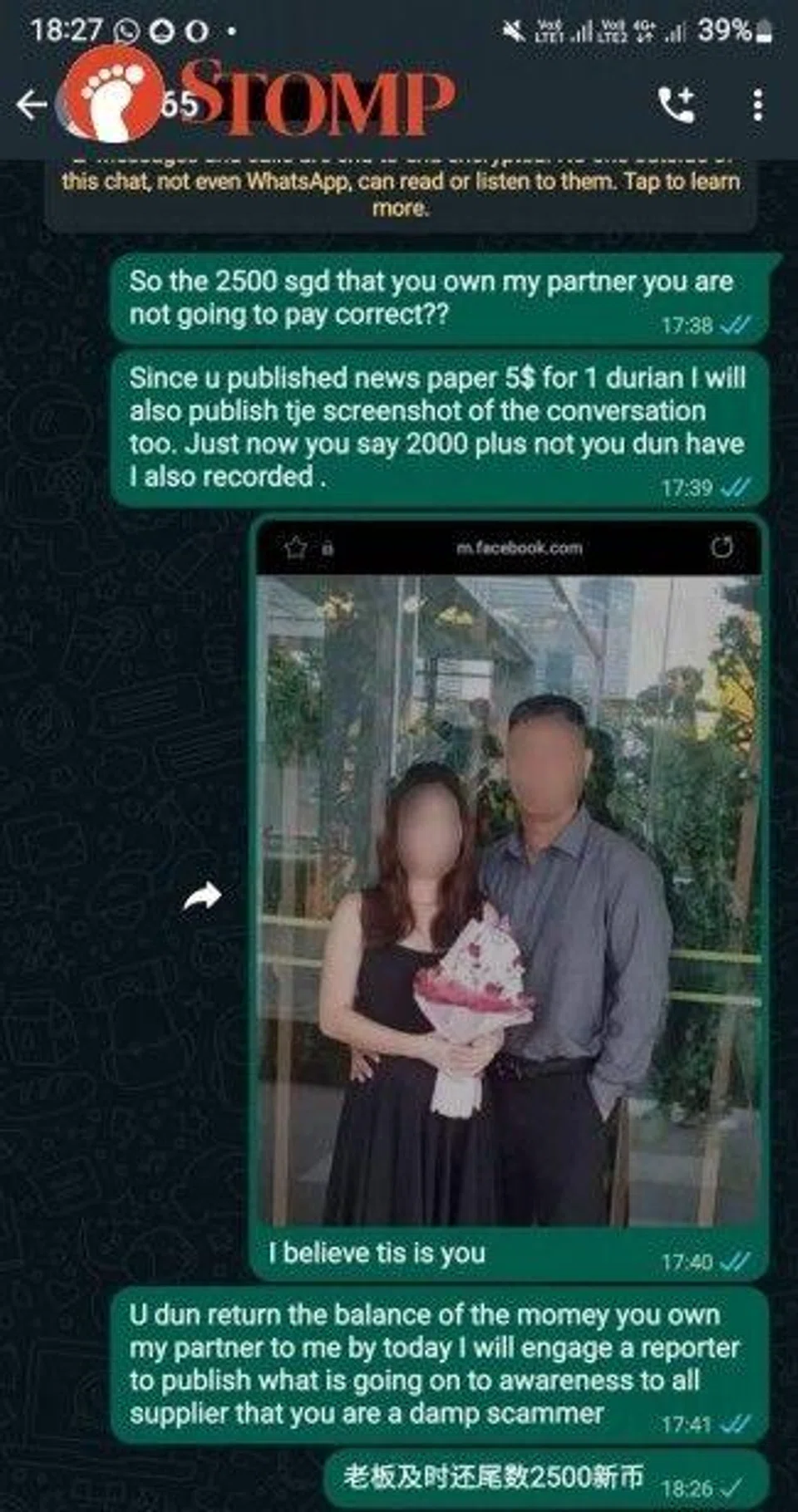 The irony is that the Stomper revealed that Ah Hua had previously failed to pay the Stomper’s partner $14,000 for durians supplied to Ah Hua in 2020.