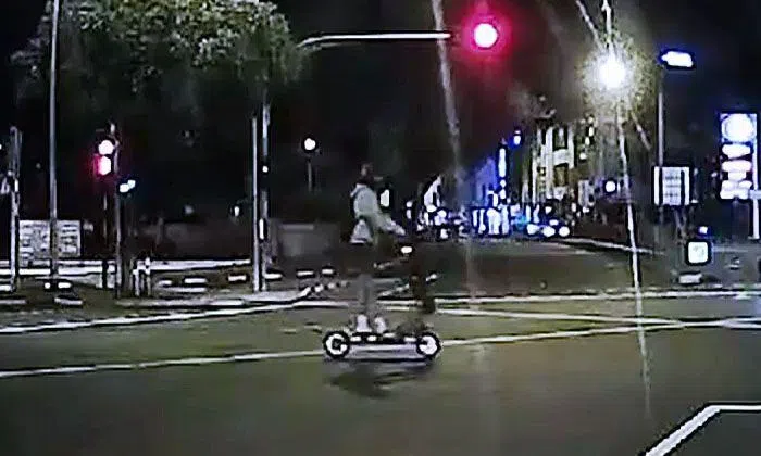 An electric scooter rider was caught on video circling around the junction of East Coast Road and Still Road at 2.50am this morning (Aug 31).