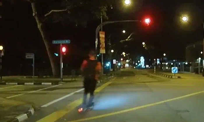 An e-scooter rider was caught on camera risking his safety by beating a red light at a traffic junction along Tanglin Road.