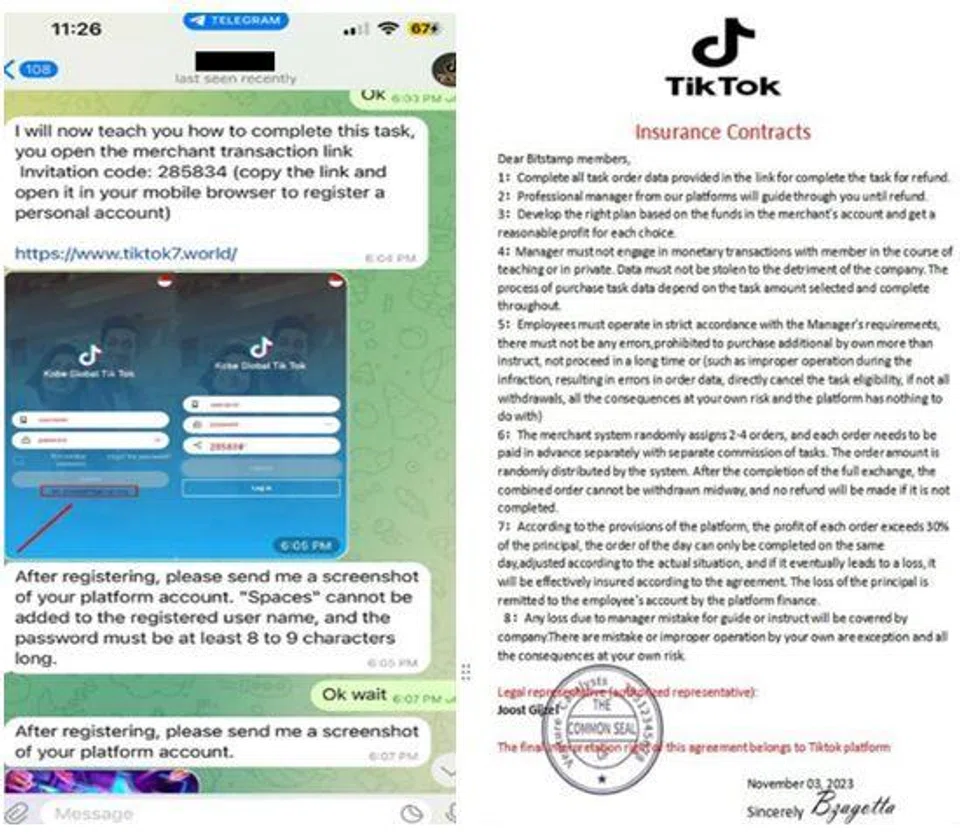 In some cases, scammers may also claim to represent TikTok or online communications/marketing companies when they approached victims with job offers.