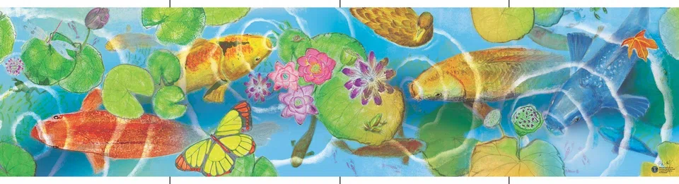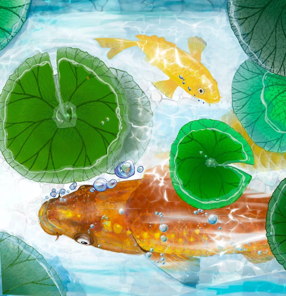 "Although it is a digital image, it is 100 per cent hand drawn on an iPad, including every water bubble and every vein you see on the lotus leaf."