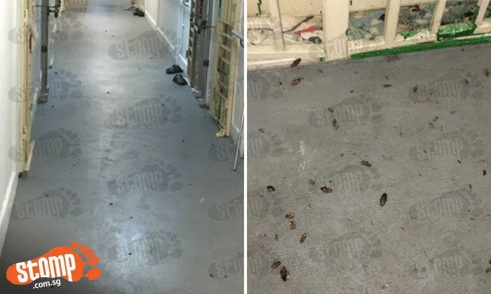 Ewww! Dozens of cockroaches infest corridor at Blk 8 North Bridge Rd