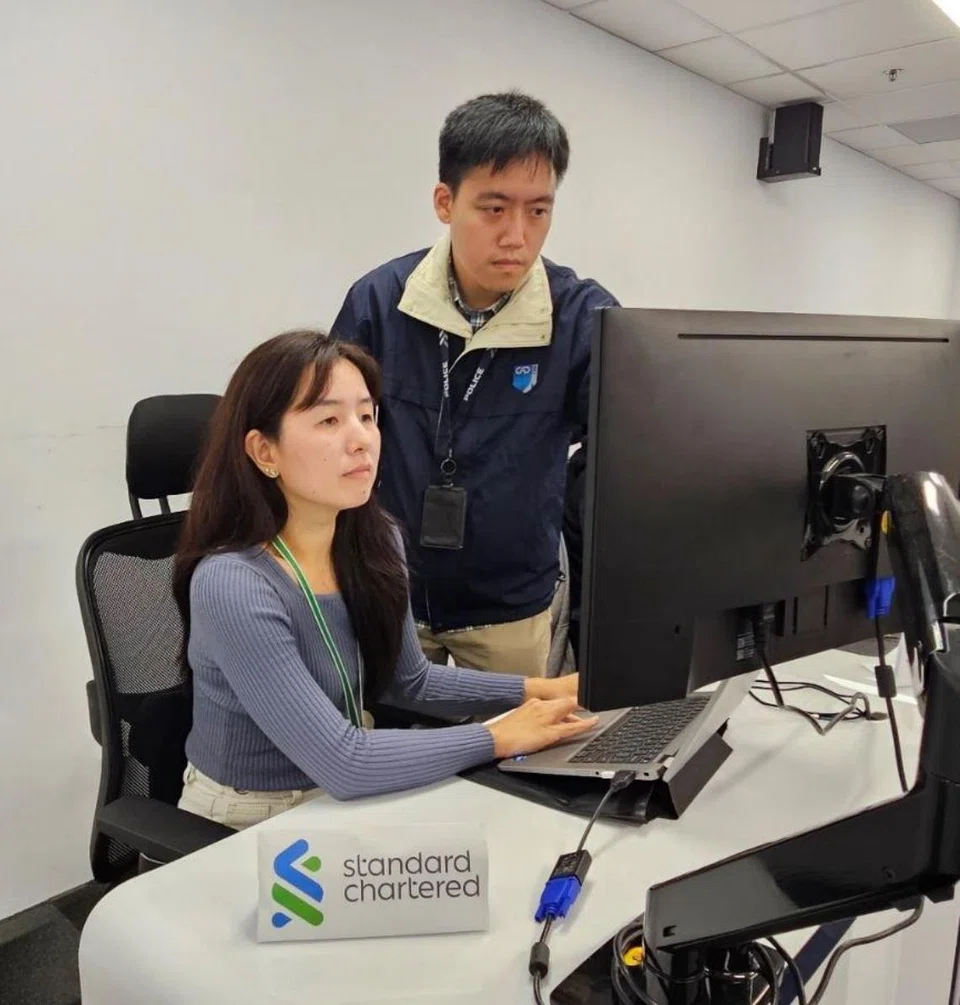 Ms Palkim Mao and DSP Timothy Ng working on an intervention case to prevent more than $50,000 loss from an investment scam victim.