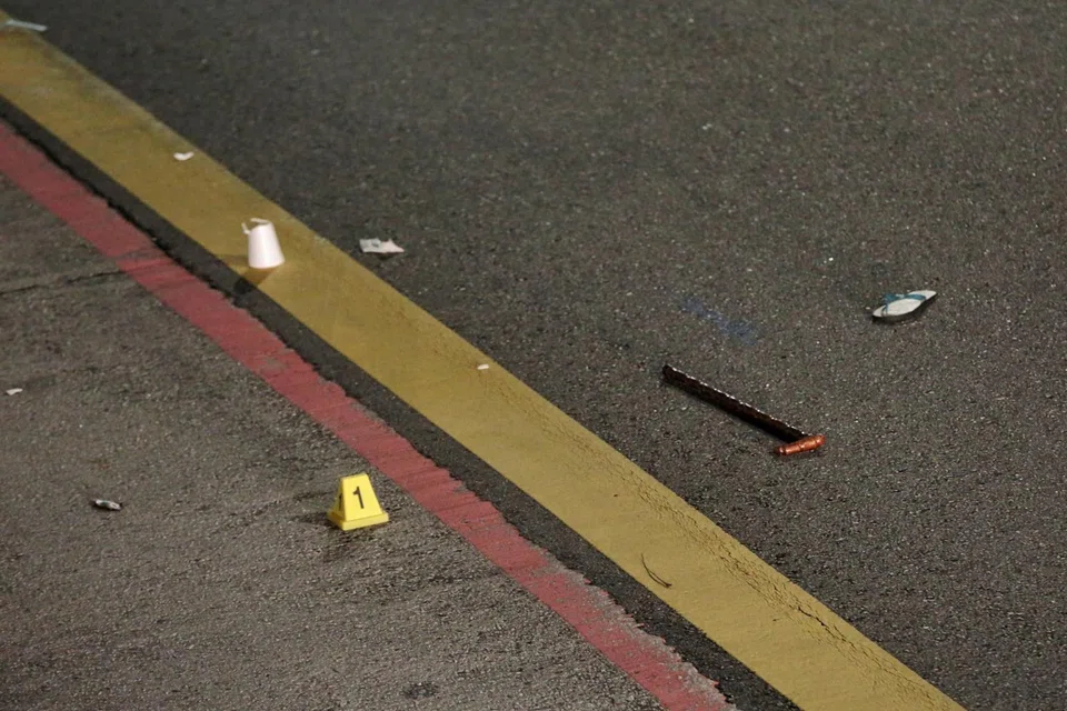 At the scene, food was scattered across the road. PHOTO: SHIN MIN DAILY NEWS