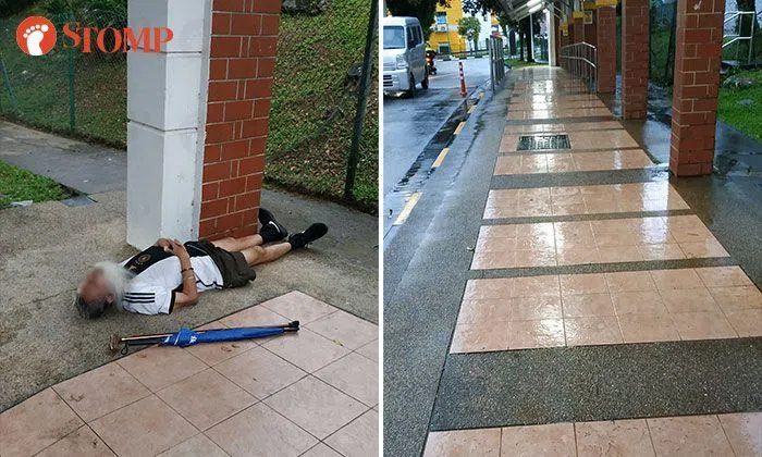 An elderly man was taken to hospital after slipping and falling on a slippery walkway near Block 17 Teck Whye Lane on Dec 3.