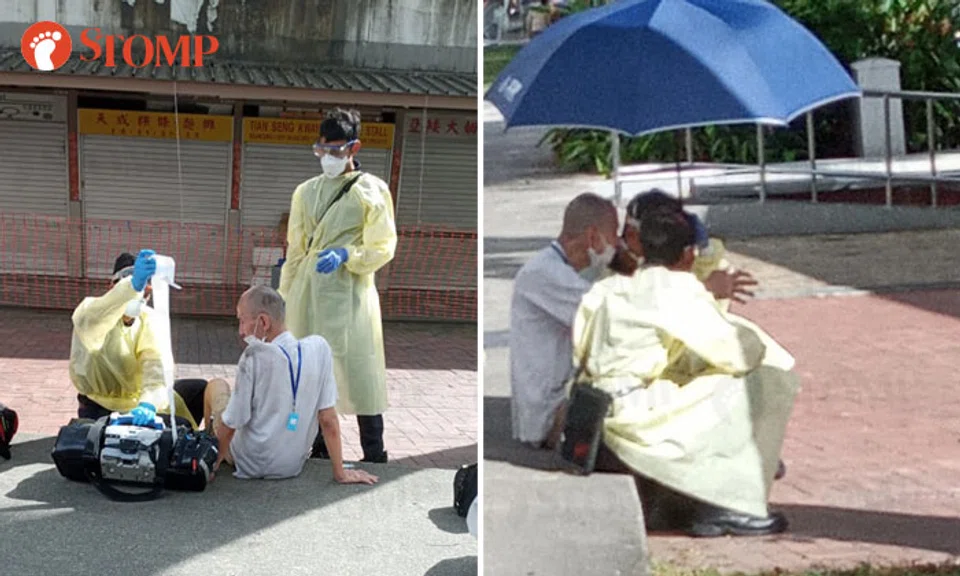 Stomper Peng Kiat alerted Stomp to the incident and shared photos he took after paramedics arrived at the scene to tend to the man.