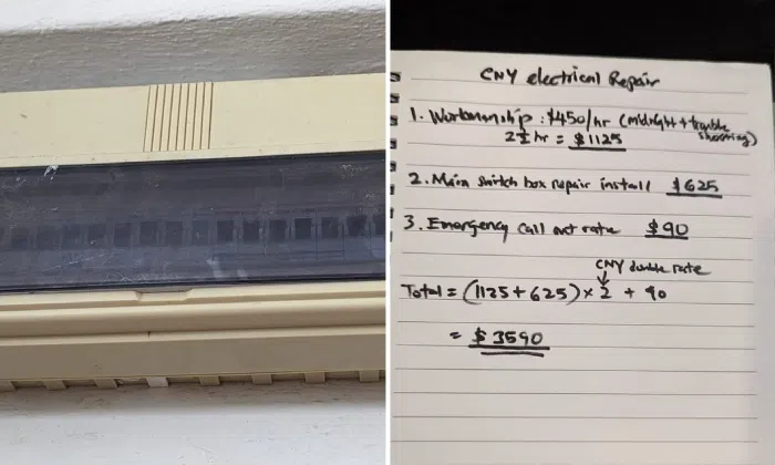 A homeowner was charged $3,590 by an electrician to fix the circuit breaker on the first day of Chinese New Year at midnight.