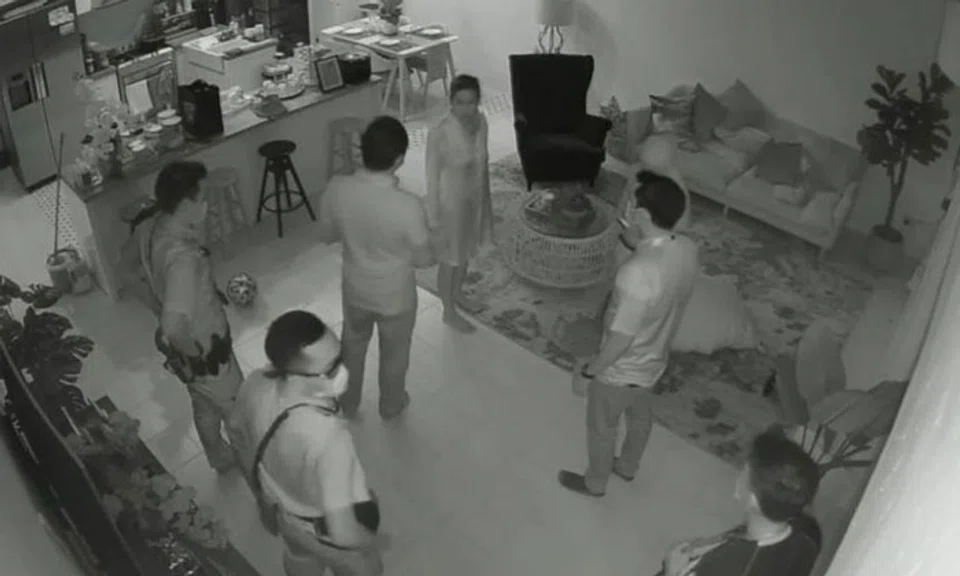 "Towards the end of the inspection, the female occupant went to retrieve her IC from the next room, with one of the safe distancing enforcement officers following after to take down the details. A police officer and the female safe distancing enforcement officer joined them in the next room shortly after."
