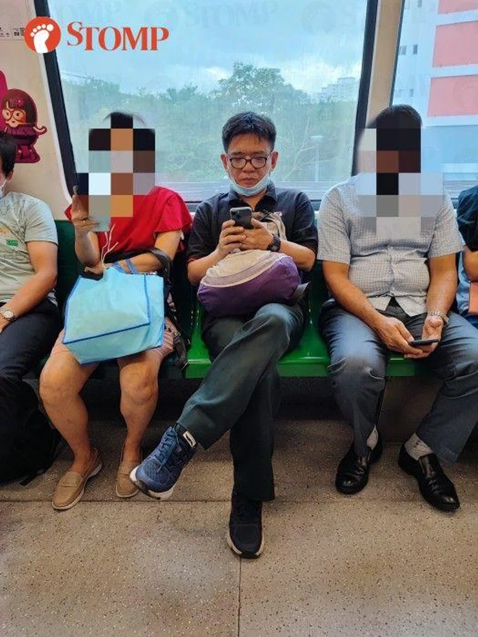 On Oct 7, Stomper Jiken saw a family of three on the train heading towards Expo and only the father was wearing his mask properly.