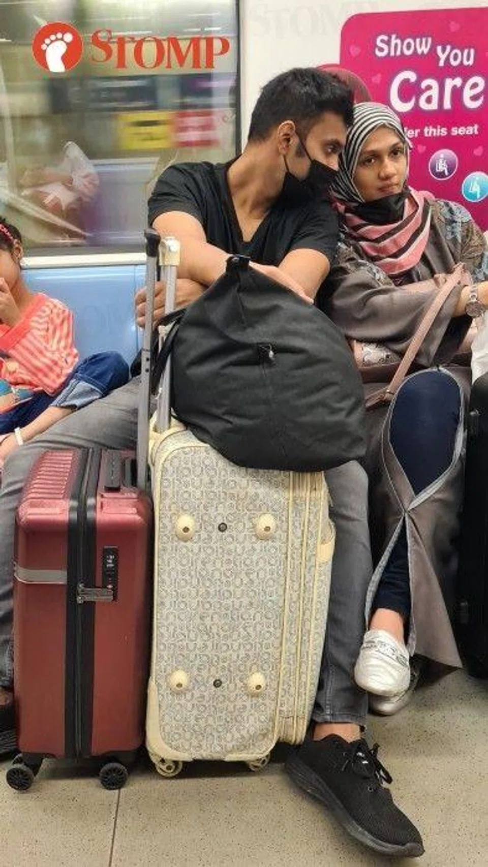 On Aug 28, a Stomper saw a man and a woman sitting separately and unmasked on the North-East Line train from Dhoby Ghaut. The Stomper said the man alighted at Outram Park station and the woman at Harbourfront.