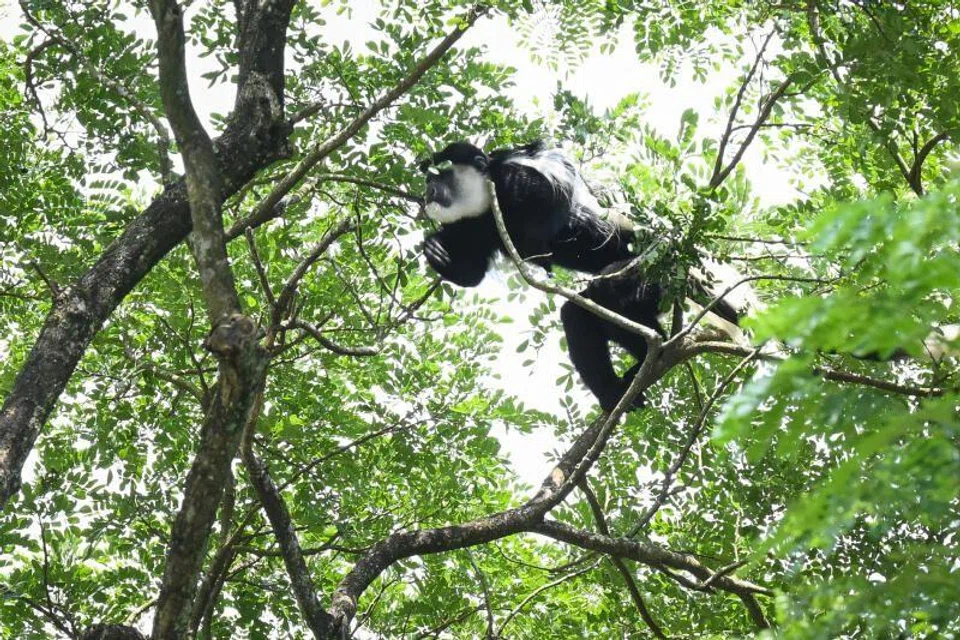 According to the Singapore Zoo’s website, the black-and-white colobus – known for its distinctive U-shaped mantle of long white fur that descends from its shoulders and around its back – is native to rainforests and open woodlands in Central and East Africa.