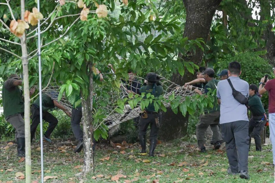 The rescuers, including personnel from Mandai Wildlife Group and the National Parks Board (NParks), had to stop work at sunset on Oct 31, and resumed their efforts the next day.