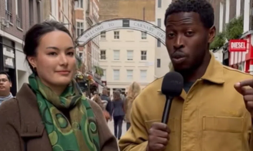 In the one-minute video filmed in a question-and-answer format along London's Carnaby Street, the woman - whose name is not revealed - gives the interviewer snippets about Singapore.