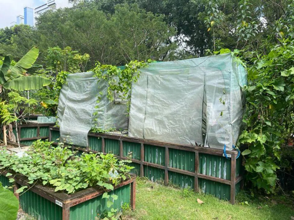 At Jurong Lake Gardens, ST saw many allotment plots caged or covered with netting, and some were locked up.
