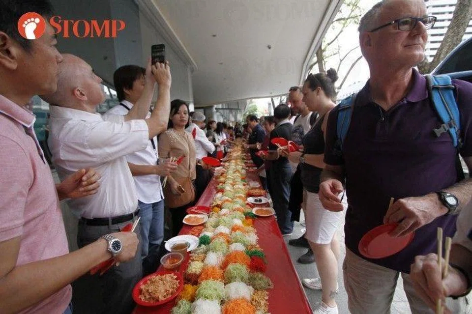 According to the Stomper, they started the lo hei at 12.28pm at the 28-metre-long table.