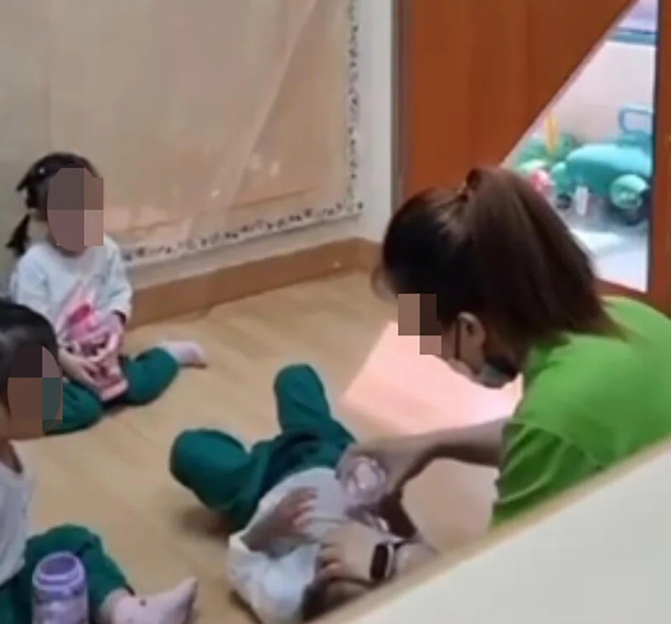 Lin held the child's mouth open by squeezing her cheeks, and used her other hand to pour water into her mouth. Her colleague caught her in the act and took a video. In the video, the child could be heard crying, coughing and choking on the water.