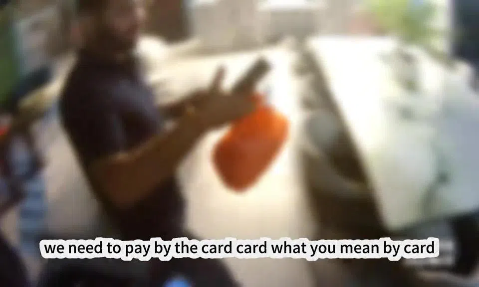 The customer, who appears apologetic, says: "We made a mistake", explaining that he had called GrabFood's customer service, who told him he would be sent an email link to pay online.
