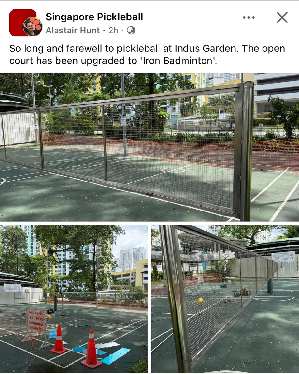 Chin added: "The installation of the metal net without notice and without consultation is nothing short of draconian. I am asking fellow pickleball players all over Singapore to express their opinions. This action creates a precedent and I worry that other town councils may follow suit."
