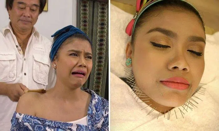 In Chengdu, China, Huda had 180 needles stuck in her chin. All to achieve the coveted V-shaped face.