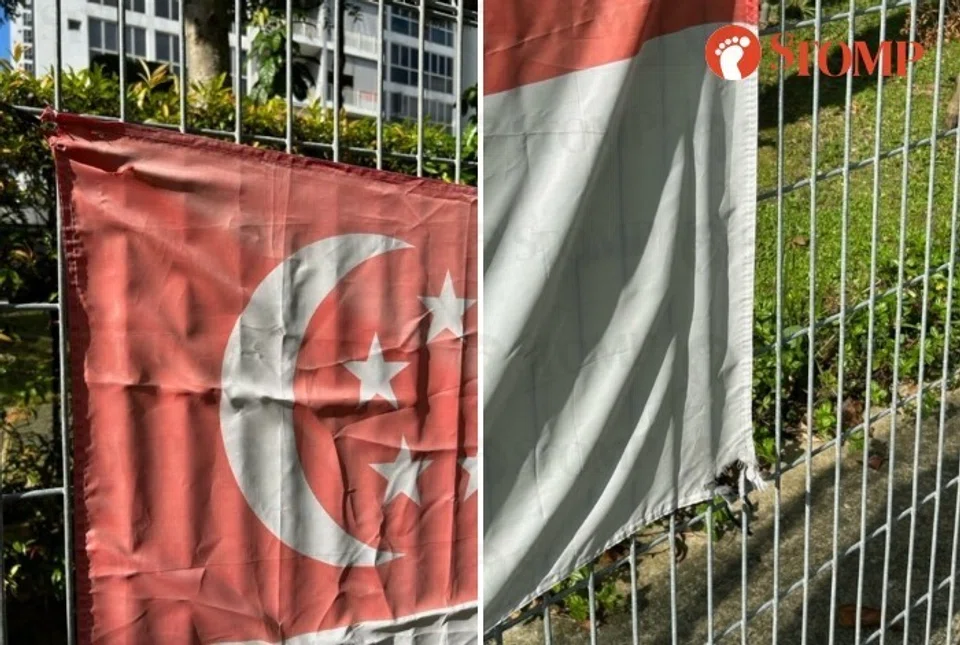 But the flags should not be in the frayed condition like the ones Stomper Ho saw outside Lake Life condominium at Tao Ching Road near Jurong Lake Gardens.