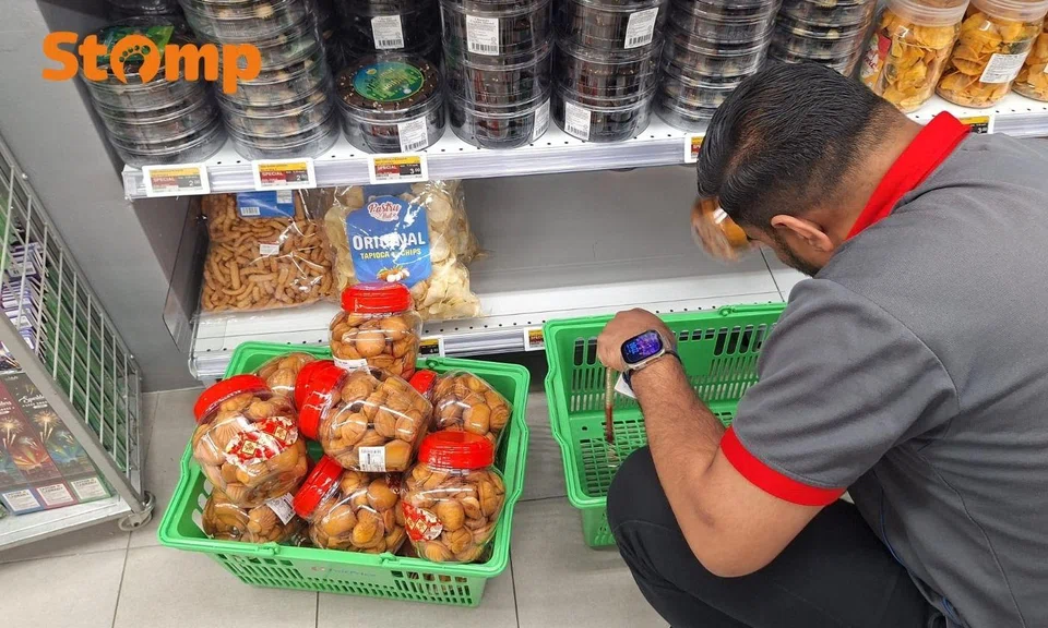 Photos he shared show containers of honey cakes going for $1 each, with labels listing a ‘best before’ date of March 30. The containers were displayed alongside other festive goods that were also on promotion.