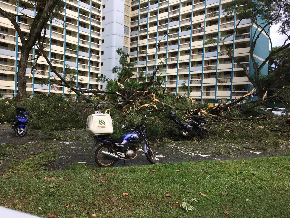 Fallen tree crushes cars and damages motorcycles in Toa Payoh, no one hurt