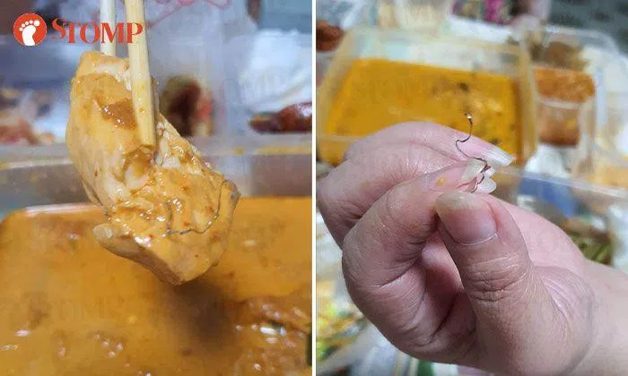 A family was enjoying their seafood dinner when they discovered a metal wire in a curry fish dish they had ordered from a stall at Cheng San Market and Food Centre on Dec 10.