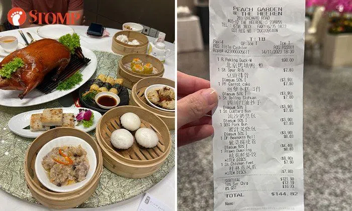 Family spends $144 at Peach Garden, impressed by free dim sum for kids