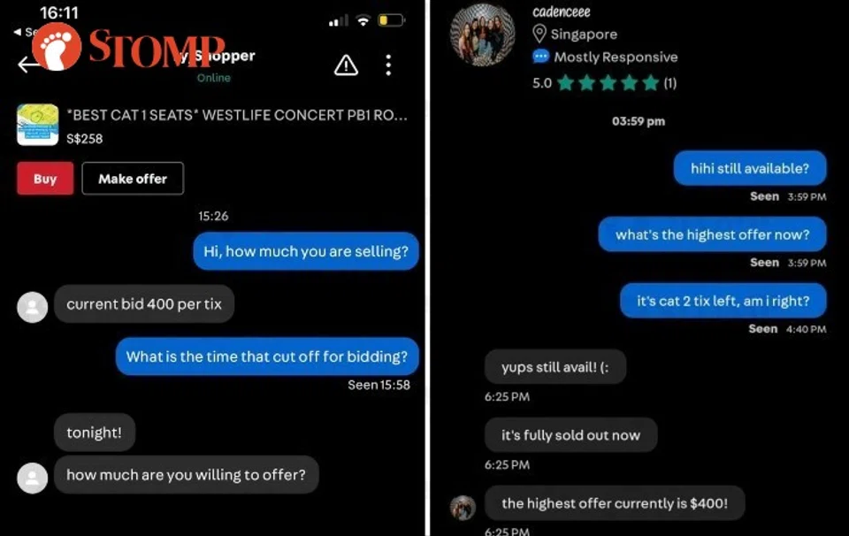 "For Westlife, the most expensive ticket is $258, but it's being sold on Carousell for at least $400 plus, which is almost double the price.