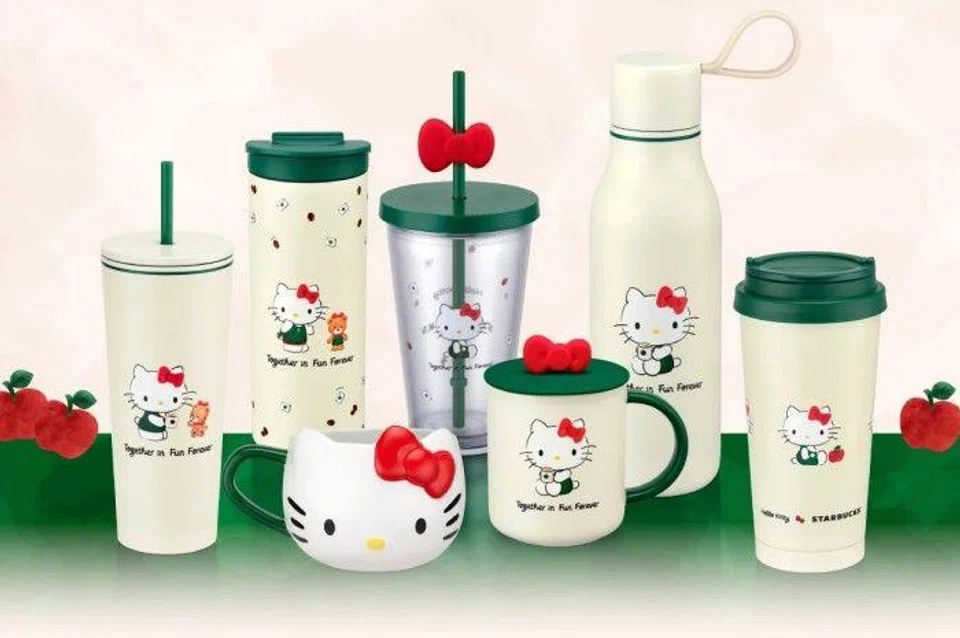 The Hello Kitty | Starbucks range includes collectibles such as mugs, tumblers and a plushie, with prices starting from $24.90.
