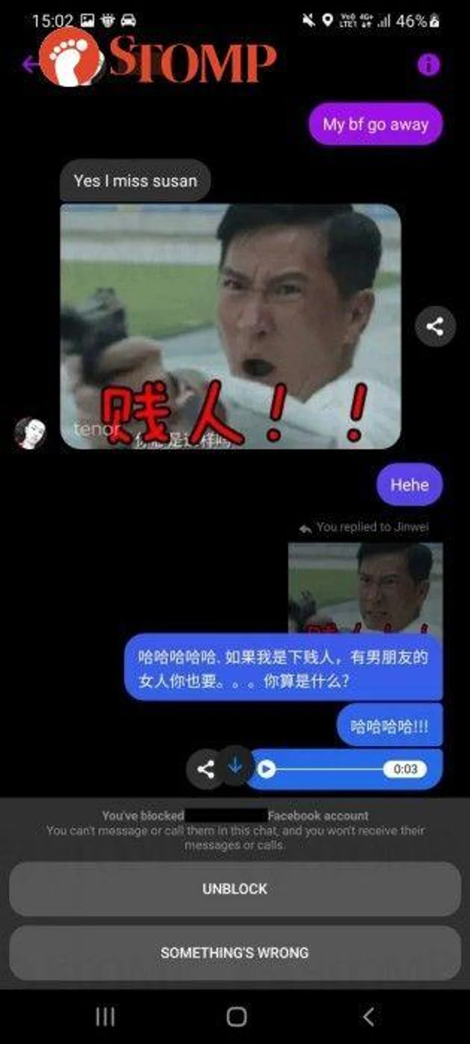 He told Stomp: "This guy is so desperate. He kept messaging my girlfriend and wanting to mess with her, so I logged into my girlfriend's Facebook Messenger account.