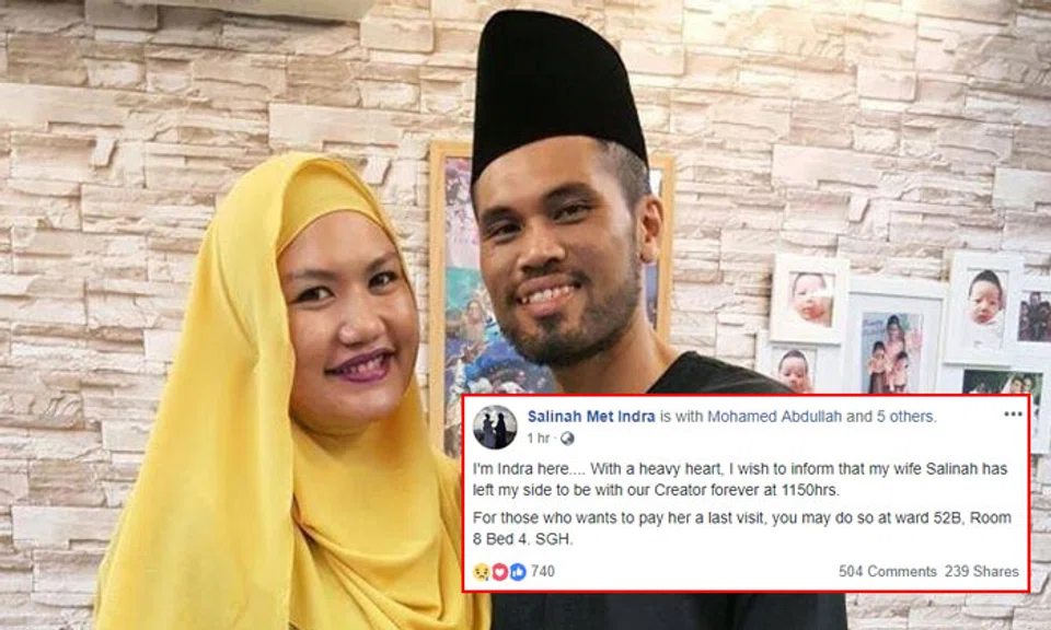 He wrote: "With a heavy heart, I wish to inform that my wife Salinah has left my side to be with our Creator forever at 1150hrs."