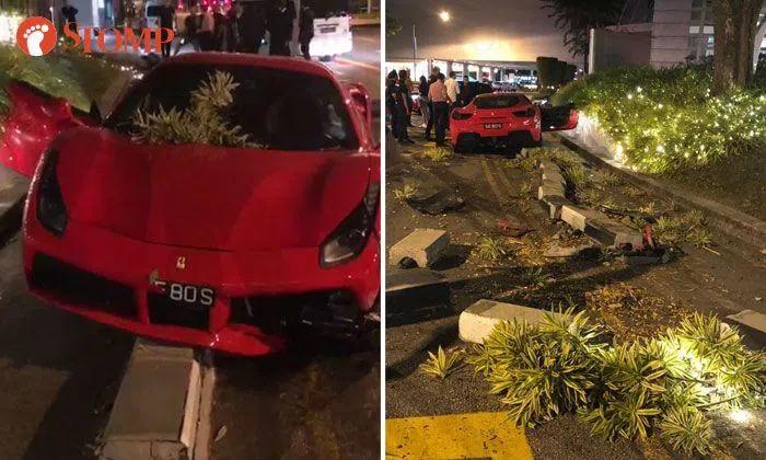 A 73-year-old Ferrari driver was taken to hospital after he crashed his car outside the Pan Pacific Singapore along Raffles Boulevard in the early hours of Sunday morning (Feb 3).