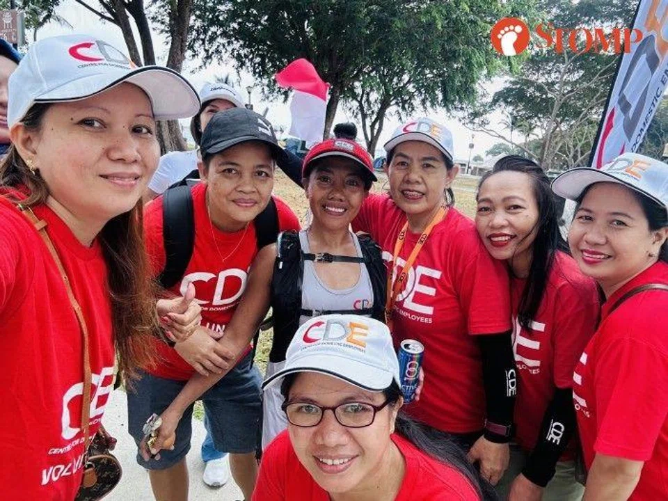 When Jeanette completed her ultra-marathon at East Coat Park in 6hr 41min on Aug 4, she was cheered on by her fellow volunteers from the Centre for Domestic Employees (CDE).
