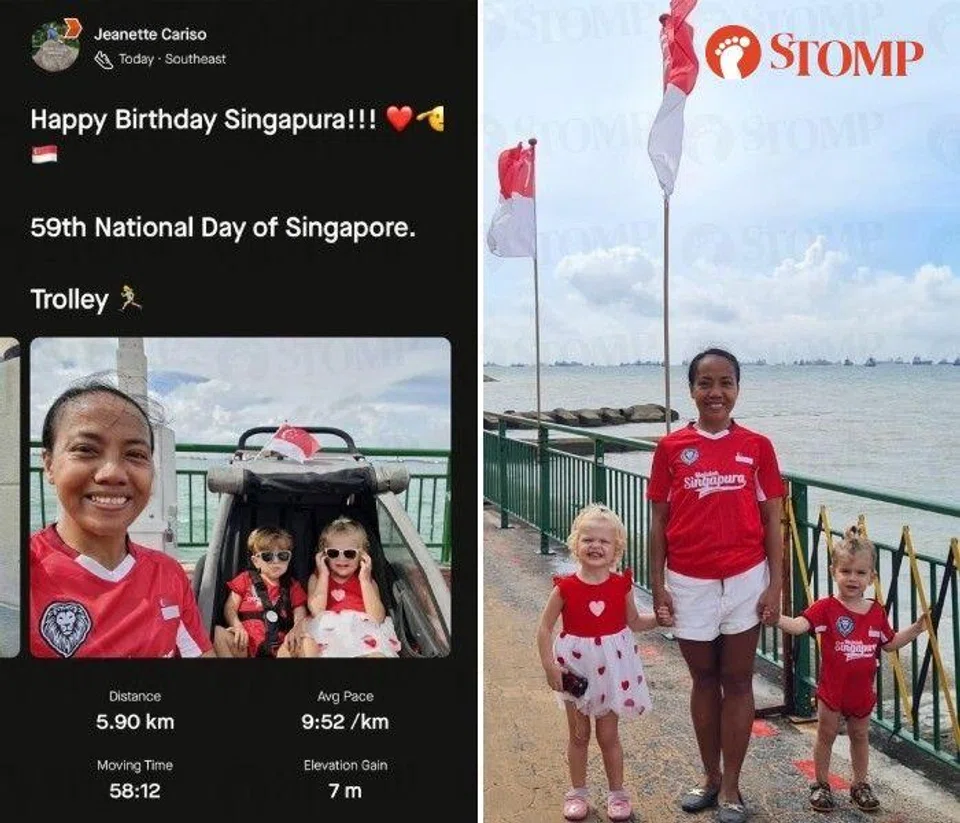 On National Day itself, the Filipina ran a less ambitious but still appropriate 5.9km with her employer's kids at East Coast Park.