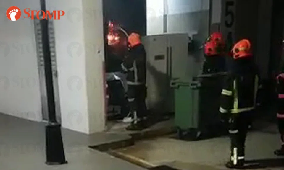 Stomper Sinling alerted Stomp to the incident and shared videos of Singapore Civil Defence Force (SCDF) officers extinguishing flames coming from the chute.