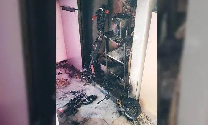 "The fire involved a Personal Mobility Device (PMD) that was left charging in the kitchen and was extinguished quickly by means of a compressed air foam backpack and a hose reel," added the SCDF, who also posted a photo of a charred e-scooter.