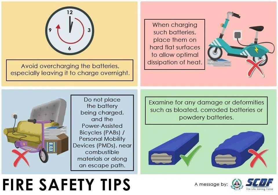 The SCDF also provided these safety tips as a reminder to the public regarding the prevention of fires involving PMDs: