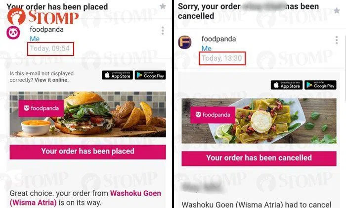 That is what happened to Stomper Vanessa who ordered her lunch in advance from Washoku Goen at Wisma Atria via Foodpanda's food delivery app on Tuesday (May 7) at about 9.54am.
