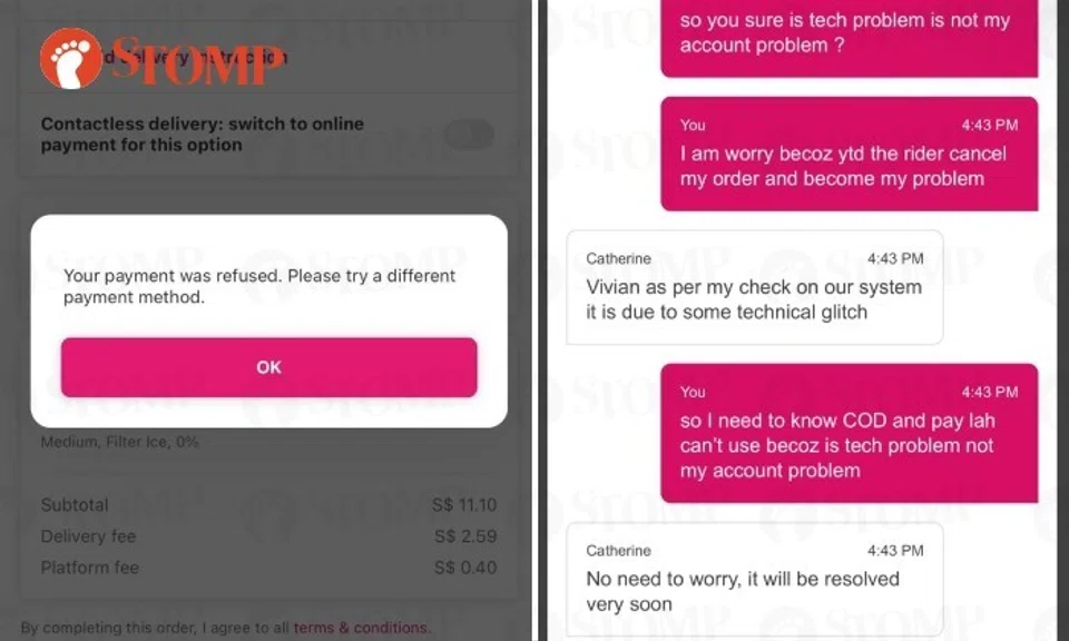 "The next day, I wanted to use the app to order food only to find my payment rejected. So I suspected that my account was banned or had some issue," said the Stomper.